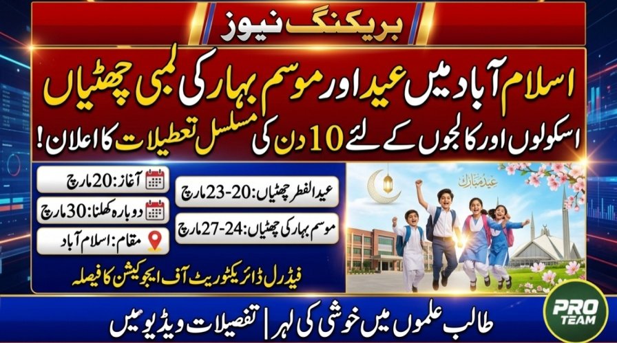 Continue Reading Eid Holidays Announced for Schools and Colleges in Islamabad