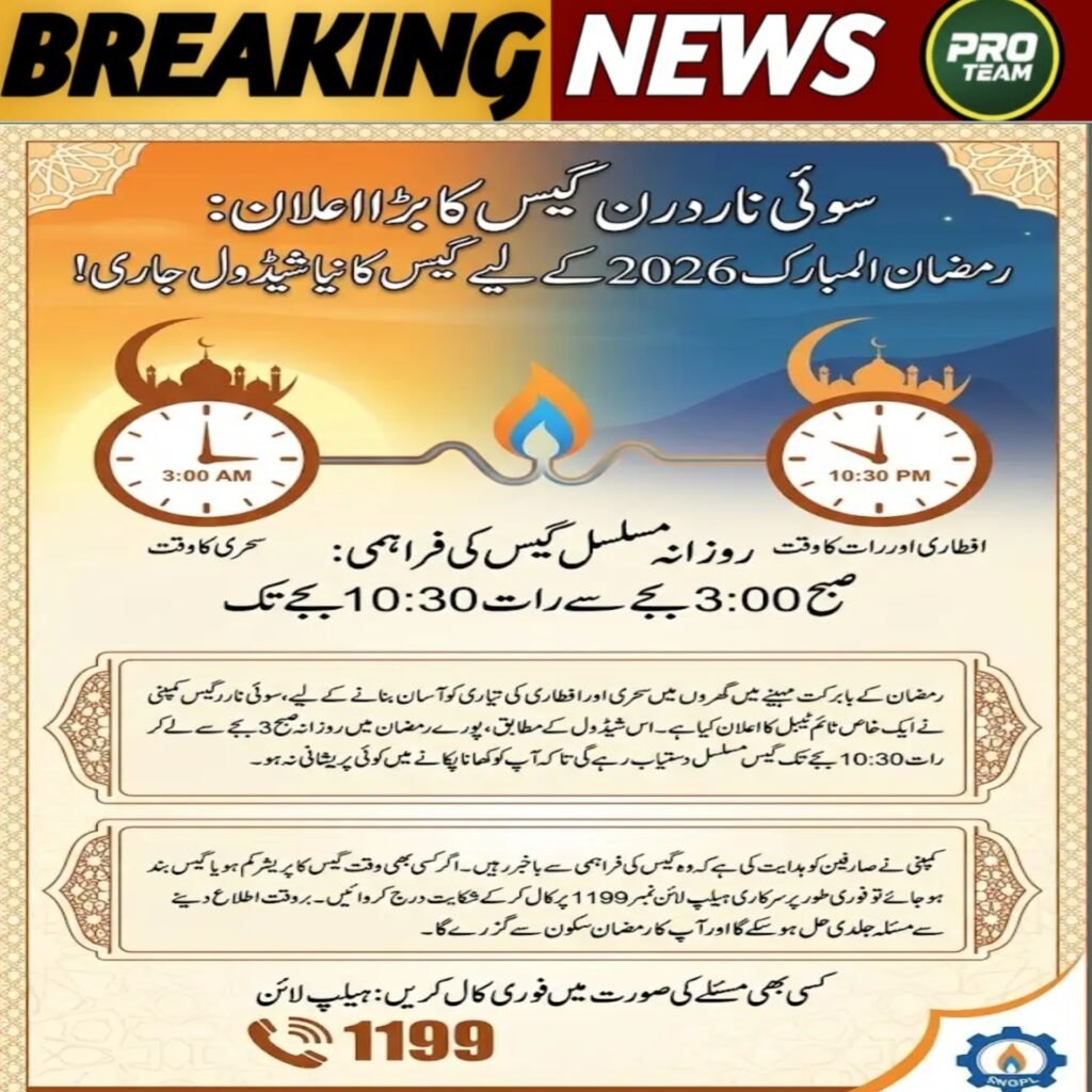 While Punjab follows SNGPL’s distribution plan, southern Pakistan operates under Sui Southern Gas Company (SSGC). Their Ramadan timings may differ slightly due to regional demand and infrastructure.